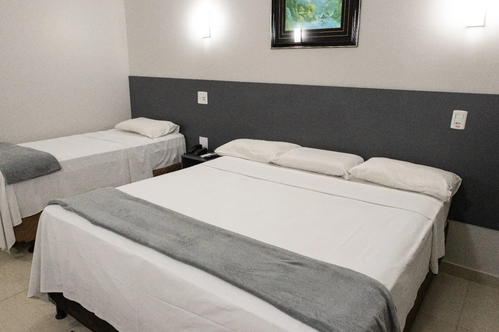 O quarto luxo triplo é ideal para quem busca um preço mais acessível e está viajando em grupos, nele é possível acomodar até 3 pessoas em camas separadas, temos oito quartos disponíveis nesta categoria, localizados no segundo e primeiro andar.