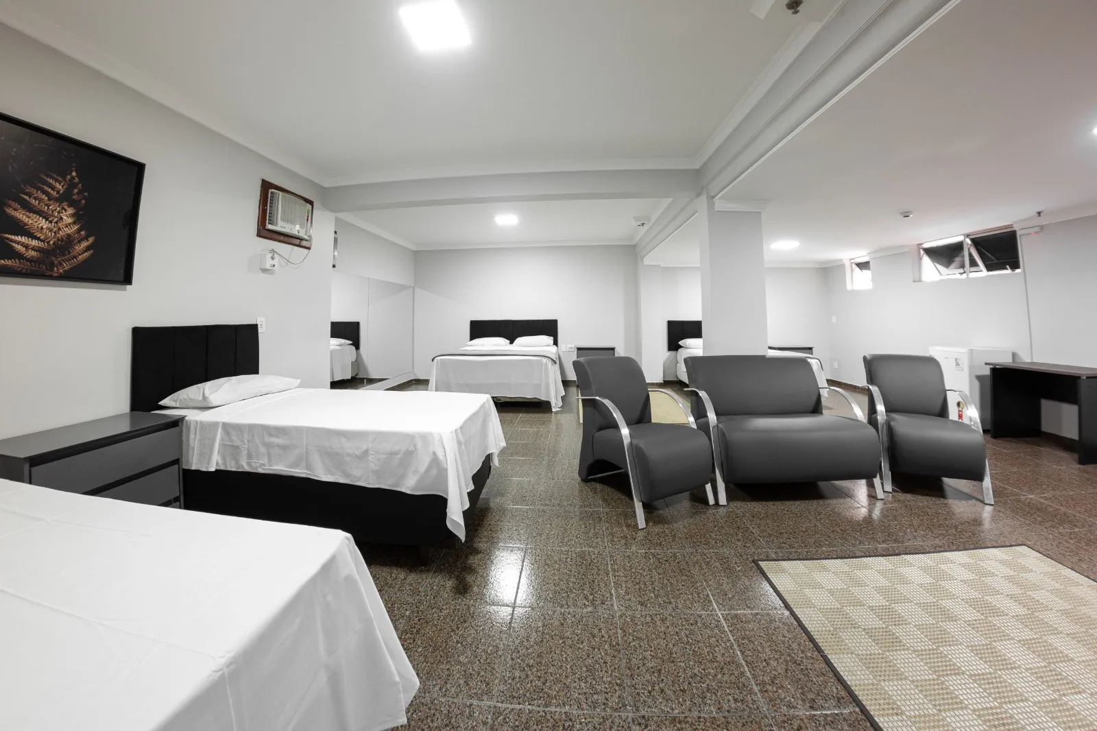 O quarto quadruplo é ideal para quem viaja em grupos ou família, nele é possível acomodar até 4 pessoas, temos dois quartos disponíveis nesta categoria, localizados no terceiro piso.